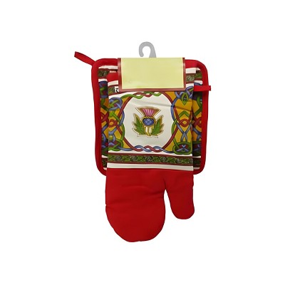 Slickblue Scottish Thistle Oven Mitt & Pot Holder Set – 100% Cotton with Celtic Weave Design