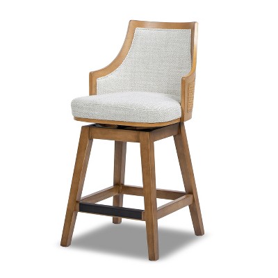 Bahama 30" Cane Rattan High-Back Swivel Counter Stool with Recessed Arms