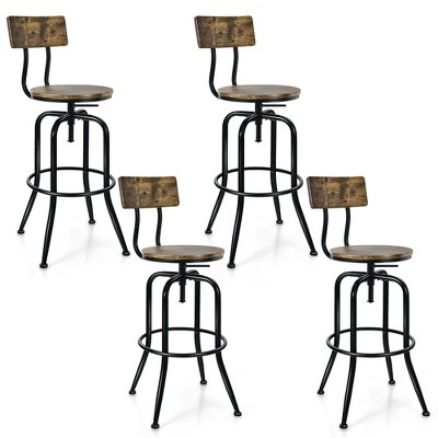 Costway Adjustable Bar Stools Swivel Counter Height Linen Chairs with Back Gray