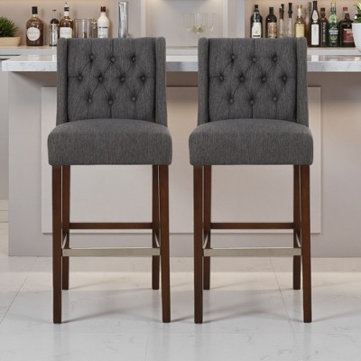 20.5" Fabric Wingback Bar Stools with Tapered Legs & Footrest, Set of 2