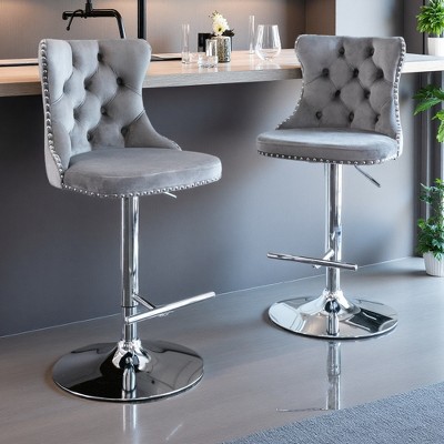 Velvet Adjustable Swivel Bar Stools with Footrest & Chrome Base, Set of 2