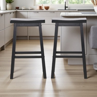 Bonded Leather 26" Backless Counter Stools with Padded Cushion and Hardwood Legs, Set of 2