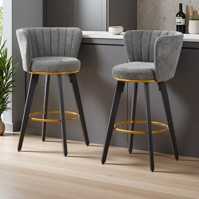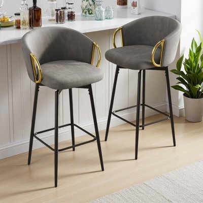 Modern Upholstered Bar Chairs with Backrest & Metal Legs, Set of 2