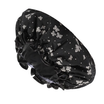 Unique Bargains Women Flowered Shower Cap Black 1 Pc