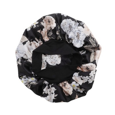 Unique Bargains Women Simulated Silk Print Shower Cap for Bathroom Hotel 1 Pc