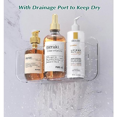 Ridstar 5-Piece Self-Adhesive Bathroom Storage Rack with Soap Dish and Hooks-Clear