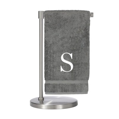 BC BARE COTTON Monogrammed Towel Set, Personalized Gift, Set of 3 - Gray - Silver Block