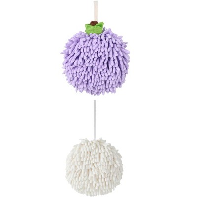 REGALWOVEN 2 Pack Soft Absorbent Chenille Fuzzy Ball Hand Towels for Bathroom Home Decor 6" x 6"