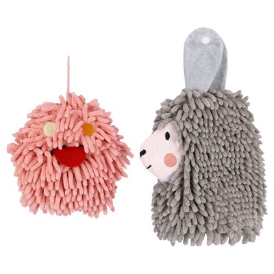 REGALWOVEN Chenille Fuzzy Ball Cute Cartoon Decorative Hand Drying Hanging Hand Towel for Bathroom 7" x 7" 2 Pcs