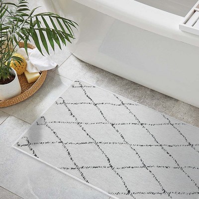 Hastings Home 100% Cotton Trellis Bathroom Mat - 60" x 24", White