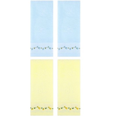 REGALWOVEN 4 Pcs Bathroom Kitchen Soft Absorbent Cotton Floral Embroidered Hand Towel 13" x 29"