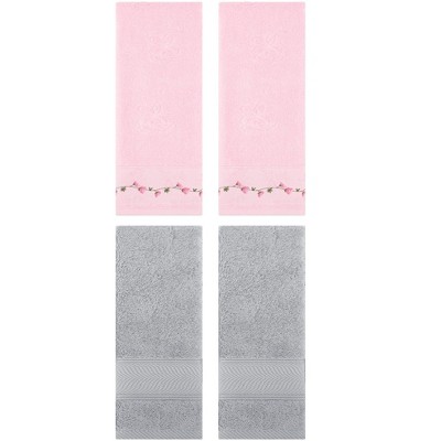 REGALWOVEN 4 Pcs Bathroom Home Decor Cotton Soft Absorbent Floral Embroidered Hand Towel 13" x 29"