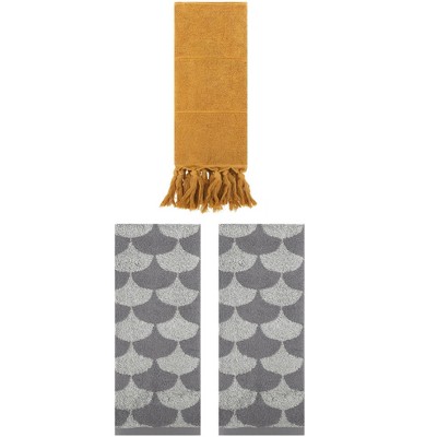 REGALWOVEN 3 Packs Cotton Geometric and Solid Absorbent Soft Hand Towel for Bathroom Kitchen
