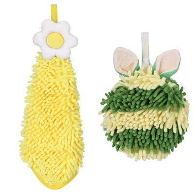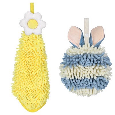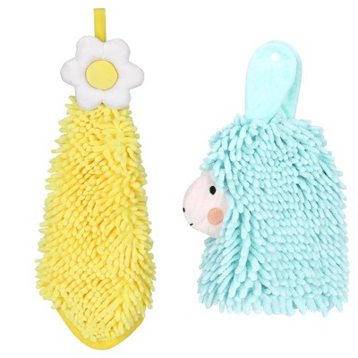 REGALWOVEN 2 Packs Chenille Hand Towel Flower and Cute Cartoon Hanging Hand Towel for Bathroom 6" x 15"/7" x 7"