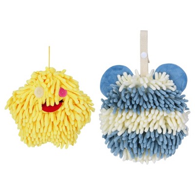 REGALWOVEN Soft Absorbent Cute Fuzzy Hanging Decorative Bathroom Chenille Hand Towel 6" x 15"/7" x 7" 2 Packs