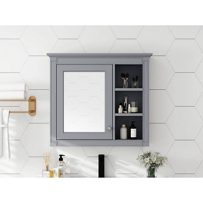 Spassway 29"H Blue Modern Bathroom Mirror Storage Cabinet with 6 Shelves
