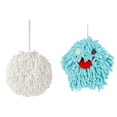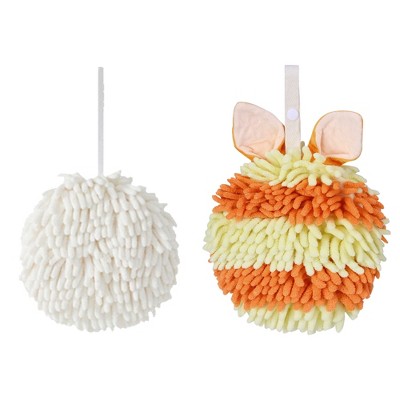 REGALWOVEN 2 Pcs Comfortable Soft Absorbent Chenille Ball Fuzzy Hand Towels