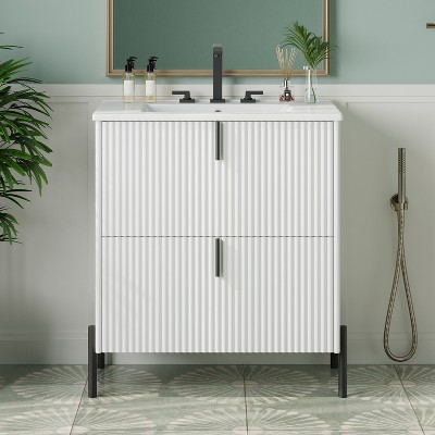 MAYEERTY 30" Bathroom Vanity with Sink Green Cabinet Drawers Solid Frame MDF