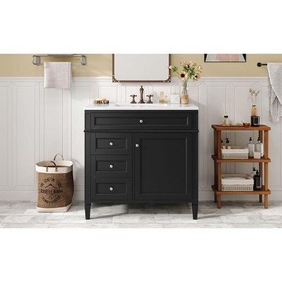 SpassWay 36"L Black Modern Bathroom Vanity with Top Sink and Soft Close Storage