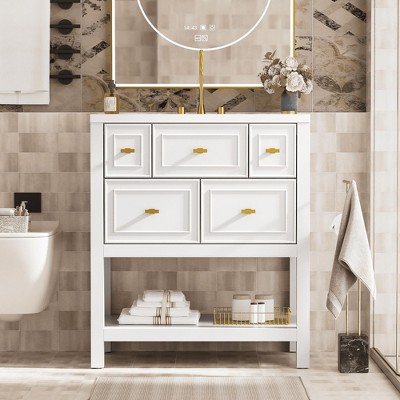 SpassWay 30"L White Modern Bathroom Vanity with Sink 2 Drawers Tip Out Storage Cabinet