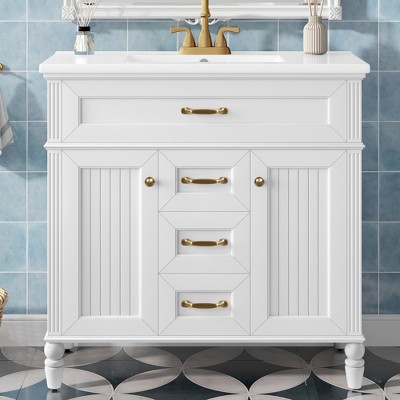Whisen 36" Vintage Bathroom Vanity with Sink Top, Bathroom Vanity Cabinet with Drawers