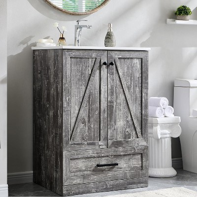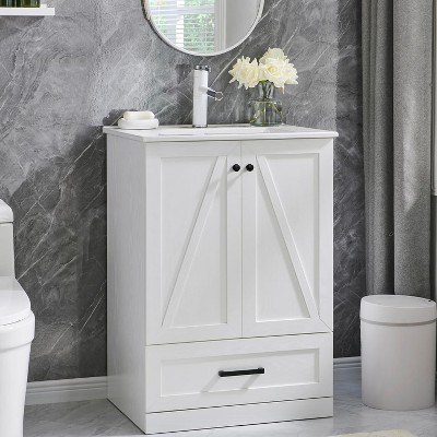 AMERLIFE Farmhouse Bathroom Vanity with Sink, with Sliding Doors & Drawers