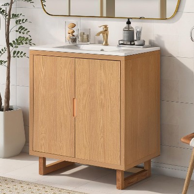 GDFStudio Broderick 24" Wall Mounted Wood Bathroom Vanity with Ceramic Sink