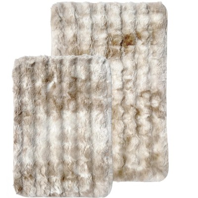 Unique Bargains Chenille Striped Machine Washable Non-Slip Soft Plush Shaggy Bathroom Rug Mat 2 Pcs