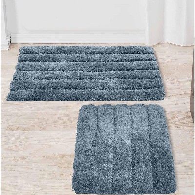 Unique Bargains 2Pcs Chenille Striped Machine Washable Non-Slip Soft Plush Shaggy Bathroom Rug Mat