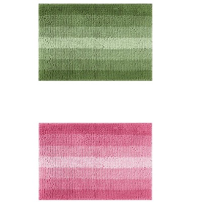 REGALWOVEN Contrasting Color Striped Non-Slip Plush Shaggy Bathroom Mats 2 Pcs