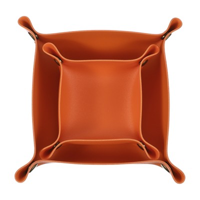 Unique Bargains PU Leather Anti-Slip Square Key Jewelry Valet Tray 4.9" x 4.9" 2 Pcs Yellow