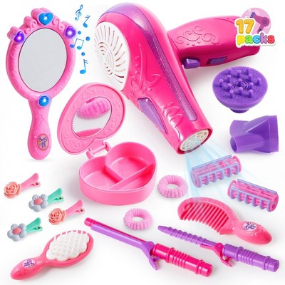 Joyfy 17Pcs Girls Beauty Salon Toy Set, Pretend Play Doll Hair Stylist Toy Kit for Kids Toddler, Fashion Cutting Makeup Party Favors, Birthday Gift