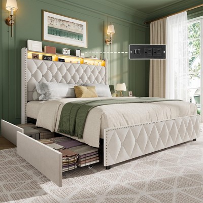 Looking for ideas for a contemporary bedroom update? Find a platform bed to give your space a chic new look. Check out Target.com to find upholstered beds & bed frames in a variety of sizes, from full & twin to king-size & queen-size to refresh the master or guest bedroom. Browse materials like wood, powder-coated metal & steel to find a bed that complements your bedroom decor. A sturdy bed frame with side rails & headboard makes it a breeze to set the foundation for a stylish & cozy bedroom. Platform beds with built-in slats eliminate the need for a box spring & offer lasting support for all-night sleep. All you need is a comfy mattress to complete the setup & turn your bed space into a cozy cocoon. Frames designed with adjustable bases make for a custom sleep experience that’s tailored to your lifestyle & needs. Have a lot of stuff to store? Opt for a bed with under-bed storage that lets you stow away blankets, seasonal clothes & more. Most modern bed frames are designed for easy assembly, so you can set it up in a jiffy. Already have a bed frame? Add a tufted or upholstered headboard with nail-head trim to elevate your decor with a touch of texture & comfortable flair.