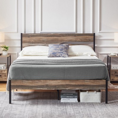 VECELO Metal Platform Bed Frame with Wooden Headboard
