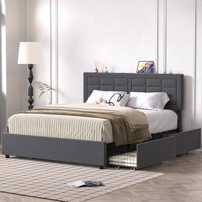 Looking for ideas for a contemporary bedroom update? Find a platform bed to give your space a chic new look. Check out Target.com to find upholstered beds & bed frames in a variety of sizes, from full & twin to king-size & queen-size to refresh the master or guest bedroom. Browse materials like wood, powder-coated metal & steel to find a bed that complements your bedroom decor. A sturdy bed frame with side rails & headboard makes it a breeze to set the foundation for a stylish & cozy bedroom. Platform beds with built-in slats eliminate the need for a box spring & offer lasting support for all-night sleep. All you need is a comfy mattress to complete the setup & turn your bed space into a cozy cocoon. Frames designed with adjustable bases make for a custom sleep experience that’s tailored to your lifestyle & needs. Have a lot of stuff to store? Opt for a bed with under-bed storage that lets you stow away blankets, seasonal clothes & more. Most modern bed frames are designed for easy assembly, so you can set it up in a jiffy. Already have a bed frame? Add a tufted or upholstered headboard with nail-head trim to elevate your decor with a touch of texture & comfortable flair.