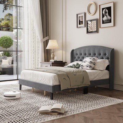 Looking for ideas for a contemporary bedroom update? Find a platform bed to give your space a chic new look. Check out Target.com to find upholstered beds & bed frames in a variety of sizes, from full & twin to king-size & queen-size to refresh the master or guest bedroom. Browse materials like wood, powder-coated metal & steel to find a bed that complements your bedroom decor. A sturdy bed frame with side rails & headboard makes it a breeze to set the foundation for a stylish & cozy bedroom. Platform beds with built-in slats eliminate the need for a box spring & offer lasting support for all-night sleep. All you need is a comfy mattress to complete the setup & turn your bed space into a cozy cocoon. Frames designed with adjustable bases make for a custom sleep experience that’s tailored to your lifestyle & needs. Have a lot of stuff to store? Opt for a bed with under-bed storage that lets you stow away blankets, seasonal clothes & more. Most modern bed frames are designed for easy assembly, so you can set it up in a jiffy. Already have a bed frame? Add a tufted or upholstered headboard with nail-head trim to elevate your decor with a touch of texture & comfortable flair.