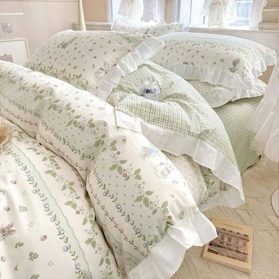 A typical bedding set usually includes a duvet cover or comforter, pillow shams or pillowcases, and a fitted sheet or bed skirt. Some sets may also include additional decorative pillows or coordinating accessories.