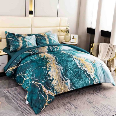BAGOKIE Marble Watercolor 6 Pieces Comforter Bedding Set