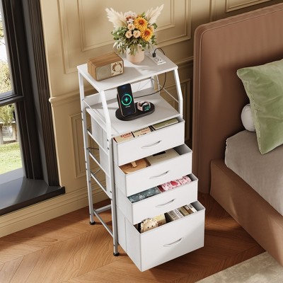 YIYIBYUS Bedside Table with 3 Drawers, Modern Small Narrow Nightstand