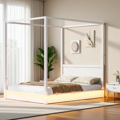 Merax Modern LED Canopy Platform Bed Frame with Slats and Headboard