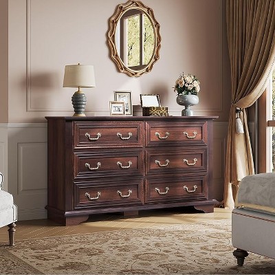 SUGIFT 6 Drawer Dresser, Modern Wood Chest of Drawers for Bedroom, White