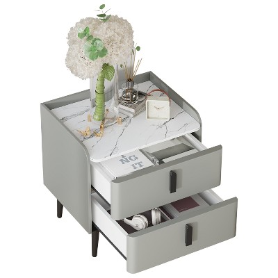 Dexmalle Night Stand with Marble-Pattern Tabletop