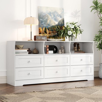 COZONY 6 Drawer Dresser Storage Cabinet, Wide Handle Free Wood Chest for Bedroom Living Room