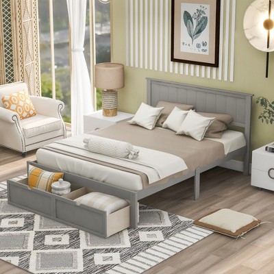 Full/Twin Size Wood Platform Bed with Under-bed Drawer-ModernLuxe