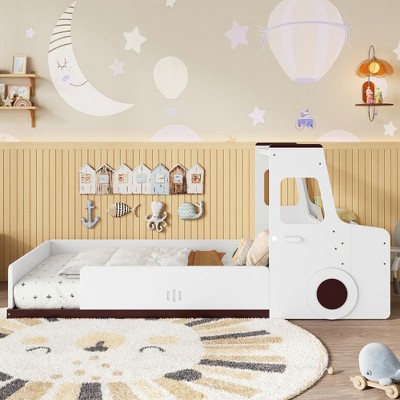 Racxily Floor Bed with Guardrails Roof Built in Tray and Signboard Kids House Bed Childlike Design