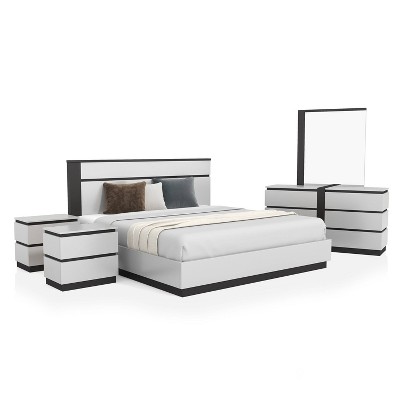 5pc Pape Modern Bedroom Set with USB Ports White/Metallic Gray - miBasics