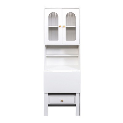 CLIHOME Fold-Out Convertible Nightstands, Desk Cabinet with Shelf and Drawer Multi-Function Home Office Workstation