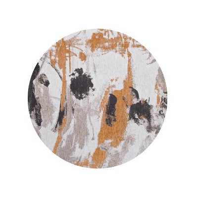 HomeRoots 8' Gray and White Round Abstract Non Skid Area Rug