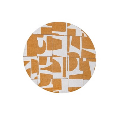 HomeRoots 8' Yellow and White Round Geometric Non Skid Area Rug