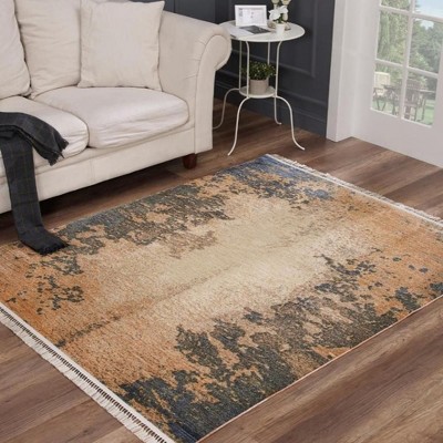 Luxe Weavers Abstract Fringed Beige 5x7 Indoor Area Rug